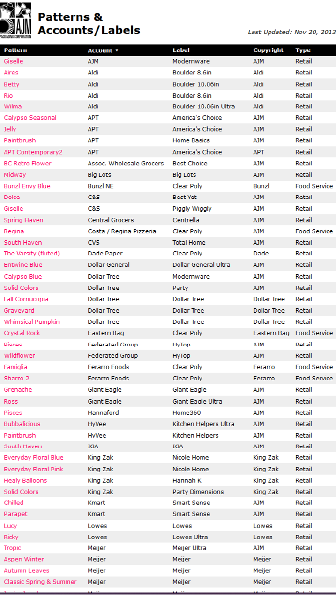 AJM is a manufacturer of paper products, including plates, cups, and takeout bags. AJM serves a wide range of clients, from nation-wide restaurants, to major regional supermarket chains, to individual small businesses.